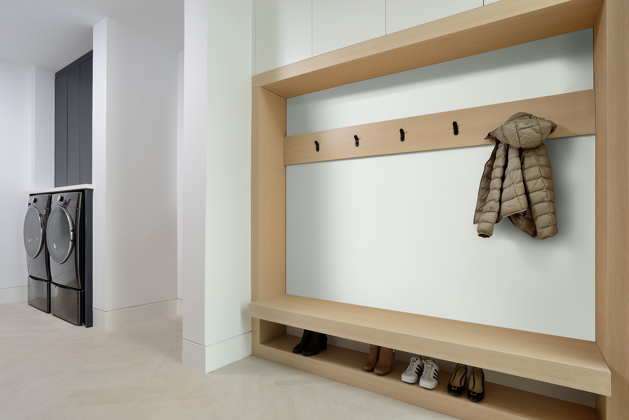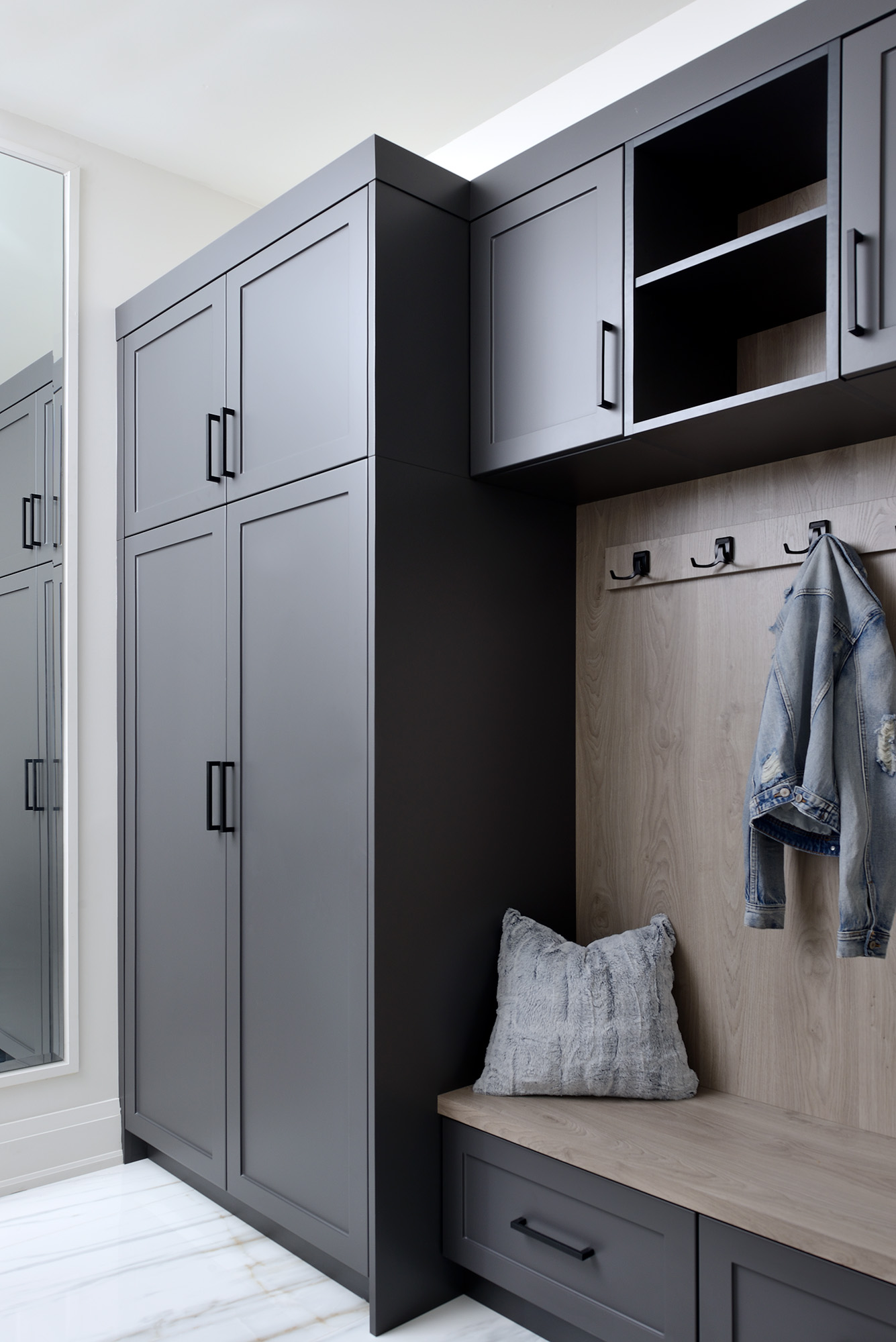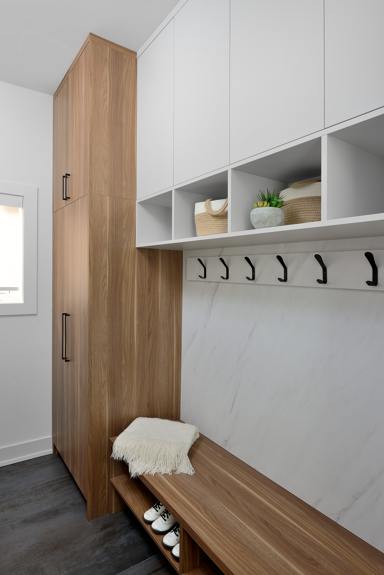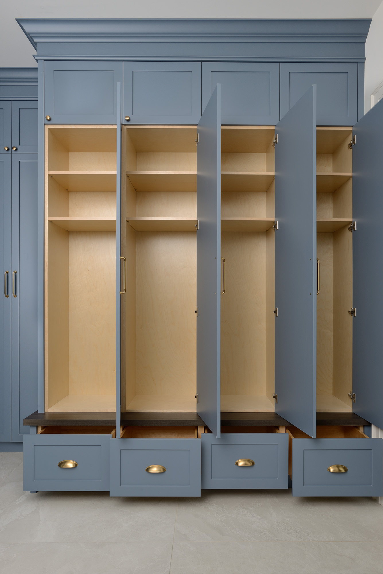Mudrooms are ideal for storing outerwear, shoes, bags, and seasonal items. Custom storage can also be created for sports equipment or other specific needs.